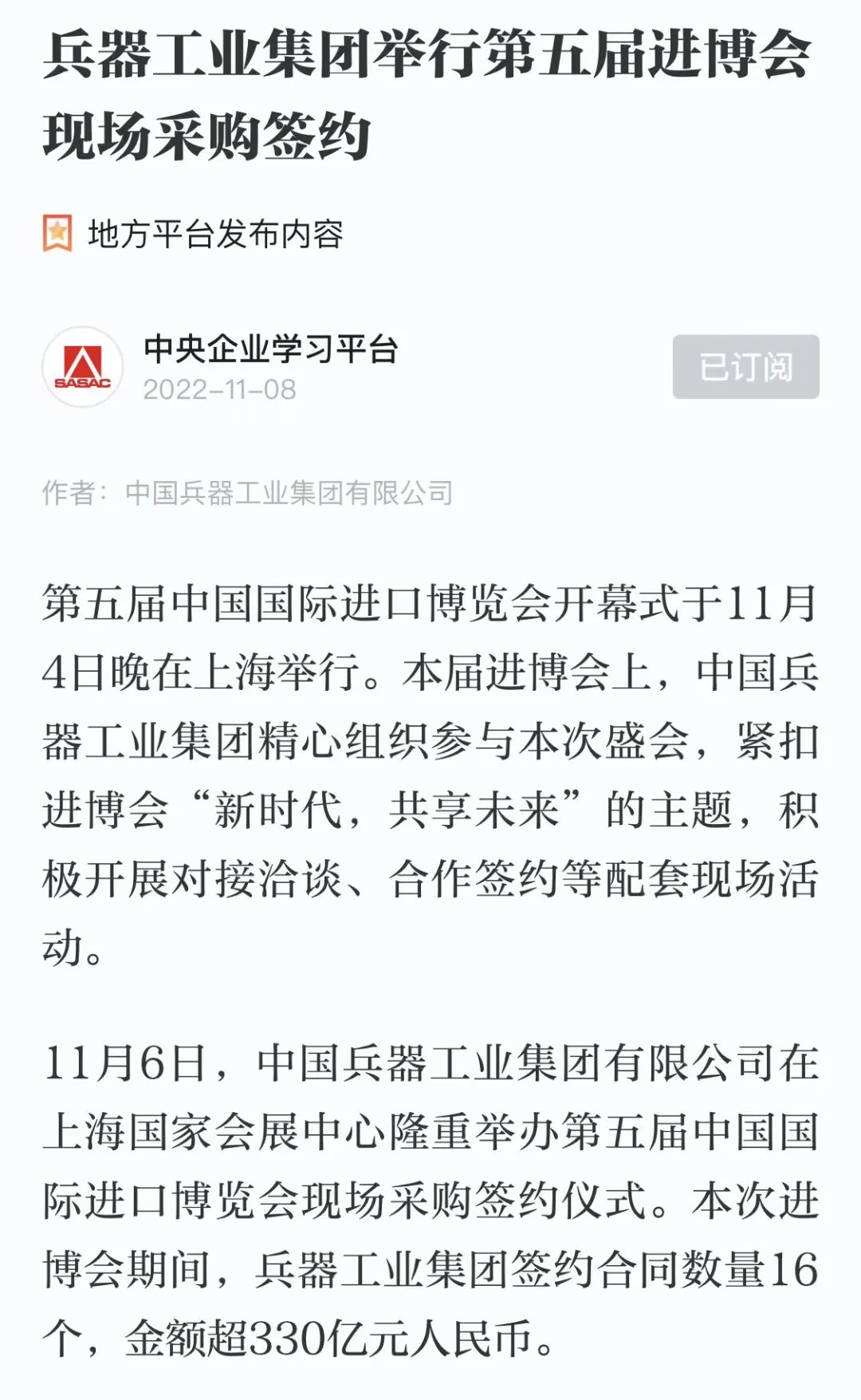 學(xué)習(xí)強(qiáng)國(guó)中央企業(yè)學(xué)習(xí)平臺(tái):兵器工業(yè)集團(tuán)舉行第五屆進(jìn)博會(huì)現(xiàn)場(chǎng)采購簽約