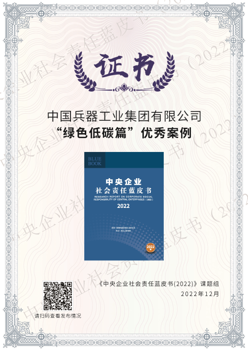 兵器工業(yè)集團(tuán)綠色低碳案例入選《中央企業(yè)社會(huì)責(zé)任藍(lán)皮書(2022)》 |