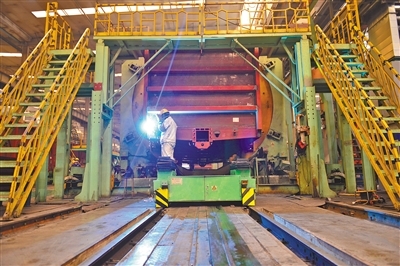 中國兵器工業(yè)集團一機集團北方創(chuàng)業(yè)公司生產(chǎn)線開足馬力生產(chǎn)鐵路車輛產(chǎn)品。日前,為圓滿完成1200臺C70E(H)型通用敞車生產(chǎn)任務(wù),該公司不斷創(chuàng)新生產(chǎn)組織模式,新、舊兩條生產(chǎn)線全面啟動,白、夜班雙班組織生產(chǎn),有效保障生產(chǎn)進度。(王磊 攝)