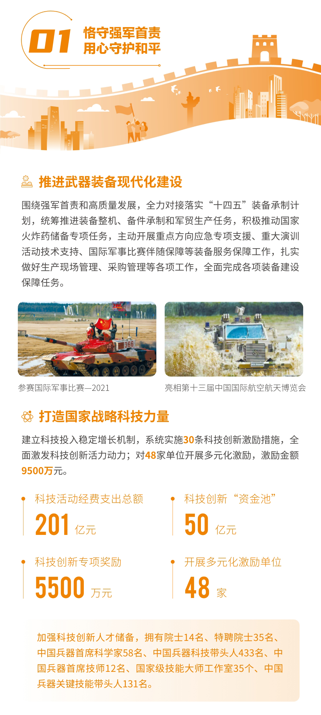近日,兵器工業(yè)集團(tuán)正式發(fā)布第十三份年度社會(huì)責(zé)任報(bào)告——《中國(guó)兵器工業(yè)集團(tuán)有限公司2021年社會(huì)責(zé)任報(bào)告》,以“用心守護(hù)和平、用力爭(zhēng)創(chuàng)一流、用情溫暖社會(huì)”為主題,從恪守強(qiáng)軍首責(zé)、服務(wù)經(jīng)濟(jì)建設(shè)、共創(chuàng)美好生活三個(gè)維度,向社會(huì)全面披露2021年度履責(zé)實(shí)踐和履責(zé)業(yè)績(jī)?!秷?bào)告》連續(xù)第三年獲得中國(guó)企業(yè)社會(huì)責(zé)任報(bào)告評(píng)級(jí)專(zhuān)家委員會(huì)“五星佳”評(píng)級(jí),兵器工業(yè)集團(tuán)成為軍工行業(yè)唯一連續(xù)11年獲得五星及五星佳最高評(píng)級(jí)的企業(yè)。 一圖解碼兵器工業(yè)的“責(zé)任力量” |
