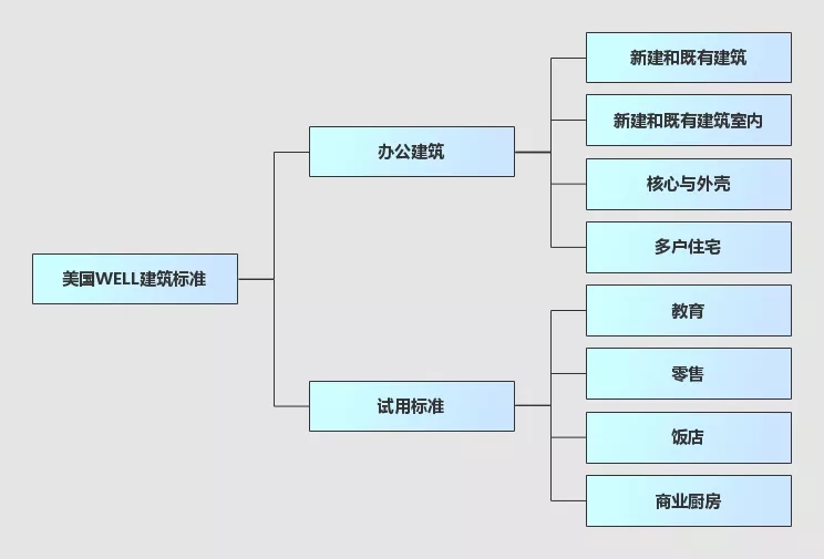 美國WELL建筑標準適用范圍包括:新建和既有建筑、新建和既有建筑室內、核心與外殼。此外WELL還推出試用標準,其適用建筑范圍包括:多戶住宅、教育、零售、飯店、商業(yè)廚房。